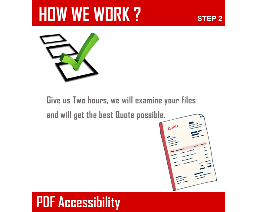 Simply email us a PDF and pick a page you’d like us to make Section 508 compliant. We’ll tag and return it to you within 48 hours at no charge.